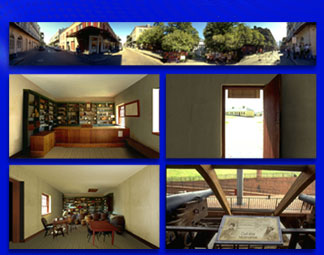 Nodal based movement puts the children right on the streets of places like Bourbon Street. Shown at top four images that were full of people were manipulated to seamlessly show the surroundings. Underneath are areas formed from 3D renders and photographs. Click on the above images for a closer view. |