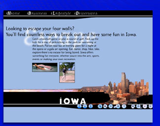 Secondary screen showing the importance of Iowa's development projects. The background color is specific to the area.